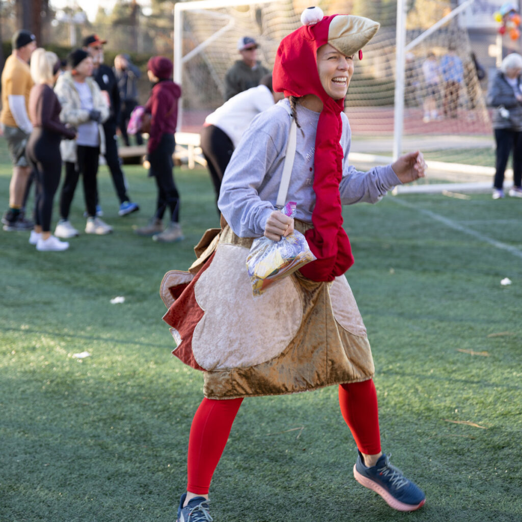 The Turkey Trot kicks off at 8:30am Thanksgiving morning with a 10k race and a 5k race/walk. The kids race starts at 8:15am on the football field with toms and hens chasing the big race-day turkey down the field. “It is a reunion. It’s fun. It’s fun seeing the little kids out on the field. It’s fun watching the people that come just to donate, have a cup of coffee and a donut. And that’s okay. That’s what I like about the Turkey Trot. You feel more understood when you’re sharing your feelings with somebody that’s gone through something similar. Those words ‘mental health,’ the stigma of those words have got to go away. Mental health is just another illness, like cancer or a cold. You can be healed, you can live a better life, and through counseling and therapy you can regain joy and purpose. But it’s recognizing it. It’s saying, ‘Okay, I’ve got trouble. I’ve got to reach my hand out and get help.’ So, to me, the Turkey Trot is just a way for me to share what we’ve been through, what’s gotten us through–which is our faith–and my goal every year is not to tear up, but I do. I probably should be through this by now but I’m not, it’s obvious, but it helps. I have people every year say, ‘What I heard Mike, from you, spurred me to go get help, or spurred me to get my daughter, or my child, or my friend, help.’ I can tell you right now, it’s saved a life. I get that every year. But every year I also get somebody new who’s just lost a loved one to suicide, that hasn’t ended, and they’ll come up to me and talk, and it’s hard, but we’re helping them with their healing process, or we’re helping them to get help. We’ve made an impact, I know we have. And that has to continue.”