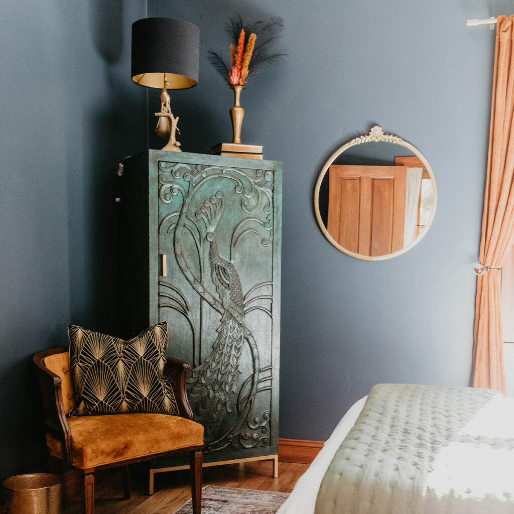 Wedding parties, family gatherings, local events, community dinners, Moonrise on Mill St. Inn is garnering the attention it deserves, serving as the backdrop for photoshoots and memories delivered by a family, and host, who believe good travel includes well-designed, time-honoring accommodations that steep guests in history, atmosphere, and hospitality. “Jess has a very high standard,” adds Zac, “I see it both in her cleanliness and the guest experience. She holds herself to the same expectations she has for her and I when we’re traveling, and you see that in her design––from the hammered bronze coffee table, to the asian-inspired lamp, to the dark-oil-painting artwork, to the ornate wardrobe and farmhouse table. So much of this home is the result of her travels in India, Vietnam, Jordan, Morocco––everywhere she’s been. She is also a very natural people-person, so this is not a faceless business, it’s a way for her to continue to travel while also being a full-time engineer and mom. Ultimately, I think her personality and experience comes through, and it shows in our reviews.”