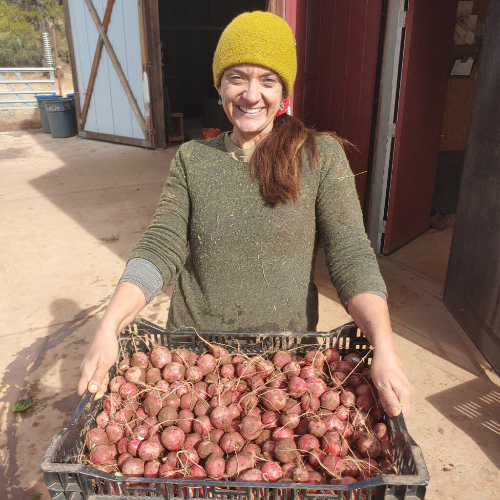 For almost 30 years Mountain Bounty has served as a leader and trailblazer in the local food movement. We were the originators of the CSA to this region, a founding member and anchor in the Nevada City Farmers Market, and have spawned numerous other farms, both nearby and across the US, with most of the local farms in our area started by founders and/or farmers who got their start at Mountain Bounty. Sierra Harvest and 3 Forks Brewery were both started, in part, by Mountain Bounty alumni. Building local food culture––with potatoes, peppers, and people––has been our mission and practice from the start.