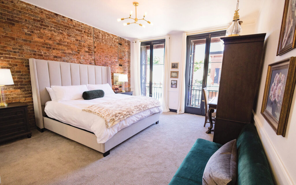 The door to The 1856 Speakeasy Suites, a Nevada City hotel-style short-term rental with private rooms, ensuite bathrooms, and gold rush charm, is hidden in plain sight––a bit like Harry Potter’s Platform 9¾, The Chronicles of Narnia, or if you’re a gambling man, Let’s Make a Deal. This red portal rests between Communal Cafe’s two street-level front doors facing what is inarguably the most frequented intersection downtown, and yet, it’s so easily overlooked, affording guests both privacy and access to local restaurants, boutique retail, and their morning Joe.
